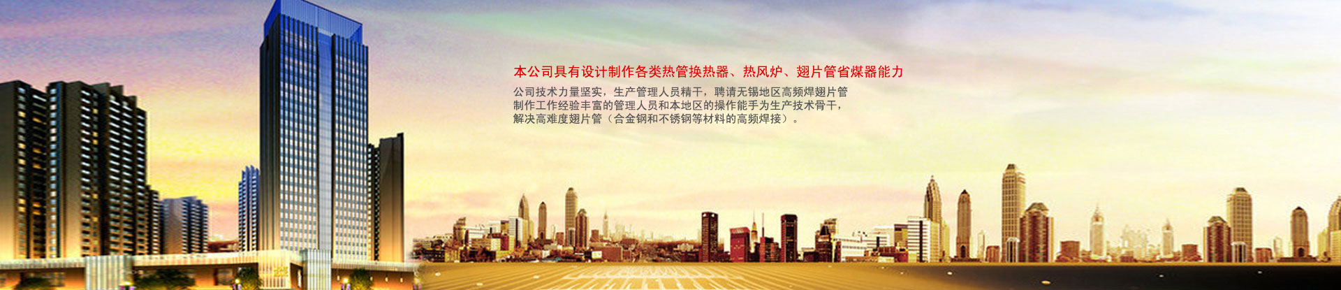 無錫市新寶紅換熱器有限公司 ???????無錫市新寶紅換熱器有限公司位于美麗的太湖之濱,是一家專業生產翅片管,翅片管換熱器,高頻焊螺旋翅片管,熱管式換熱器的廠家。